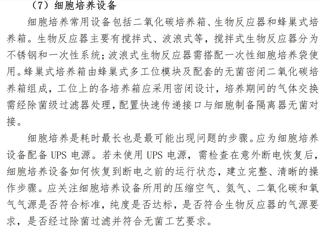蜂巢培养箱是由蜂巢式多工位模块和配套的培养箱组成,为细胞培养的常用设备,在《指南》中也有较详细的阐述,主要包括设备构成与内部环境要求、设备电源要求、气源要求、参数和性能的确认等。